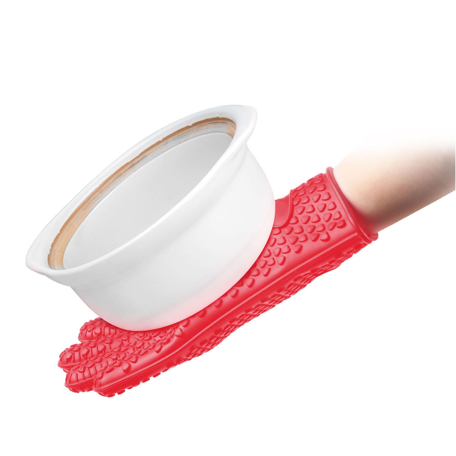 The gloves as a kitchen tool can be widely used to handle pot lids, cast iron pan handles, casseroles, cakes, cookies in the oven that effectively protects hands from heat up to 230℃/446℉. Double anti-slip design makes you much easier to get a solid grip on something hot without slipping and spilling. It is a perfect complement to any grilling and kitchenware. Make it yours now and leave your guests speechless, impressing them with your cooking skills.
