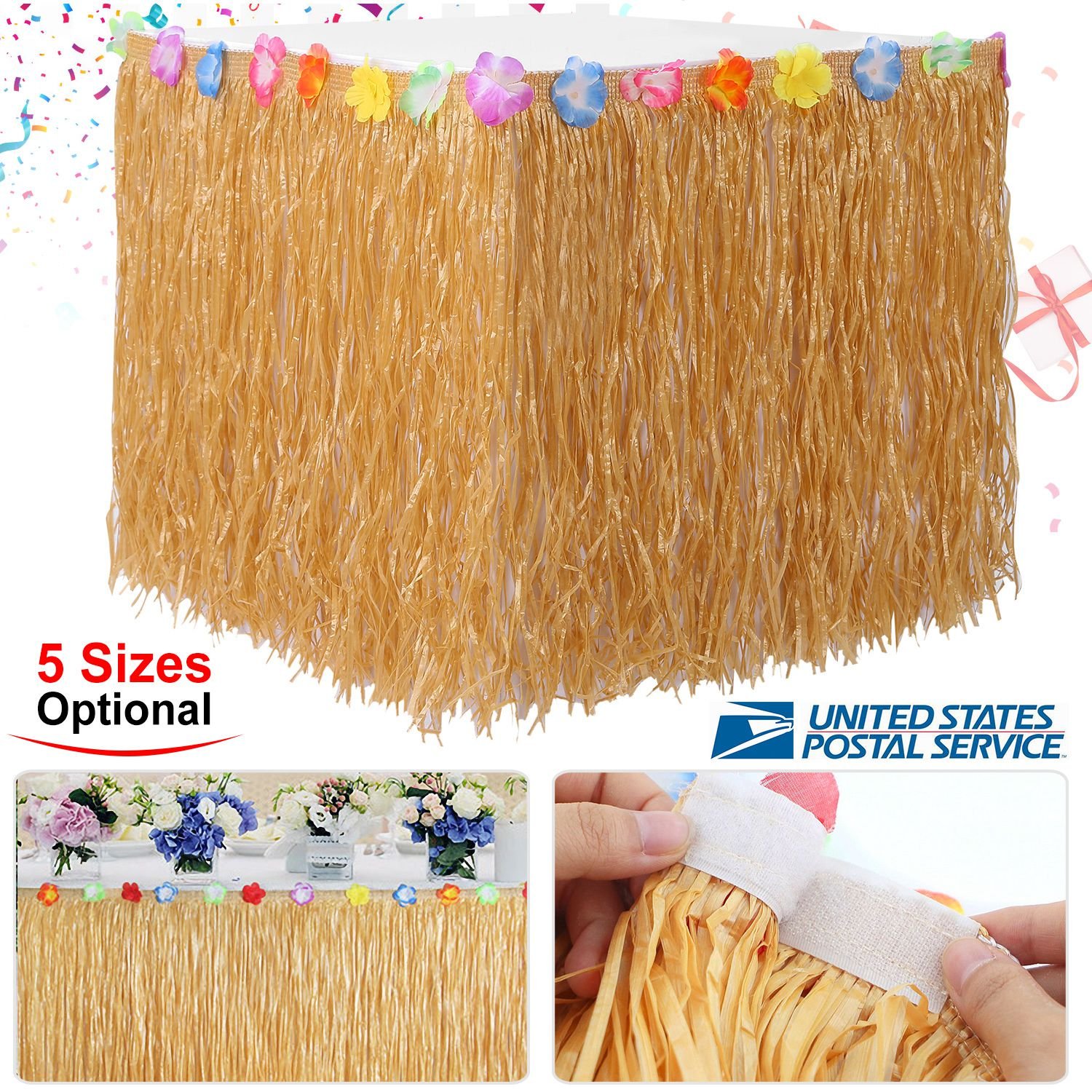 Our grass table skirt is made of quality material with tropical flower trim design, which adds Hawaiian decoration effect. And it's an excellent decoration for almost any event, like Hawaiian themed party, birthday party, Hawaiian wedding, beach party, luau party, etc. Designed with hook & loop, our grass table skirt allows easy and fast to fixate on tables, no matter the table is rectangle, square, or round, and no screws, pins or wires required. They can be easily disassembled and be used multiple times.