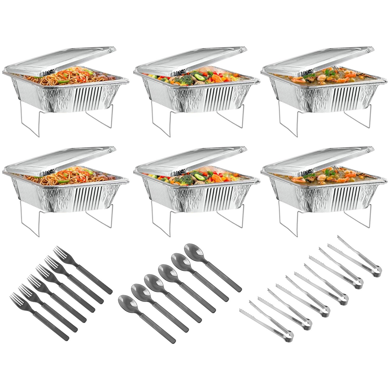 36Pcs Disposable Chafing Dish Buffet Set Food Warmers For Party Buffet Server Catering Supplies With Covers Utensils Half Size Food Pans For Parties E