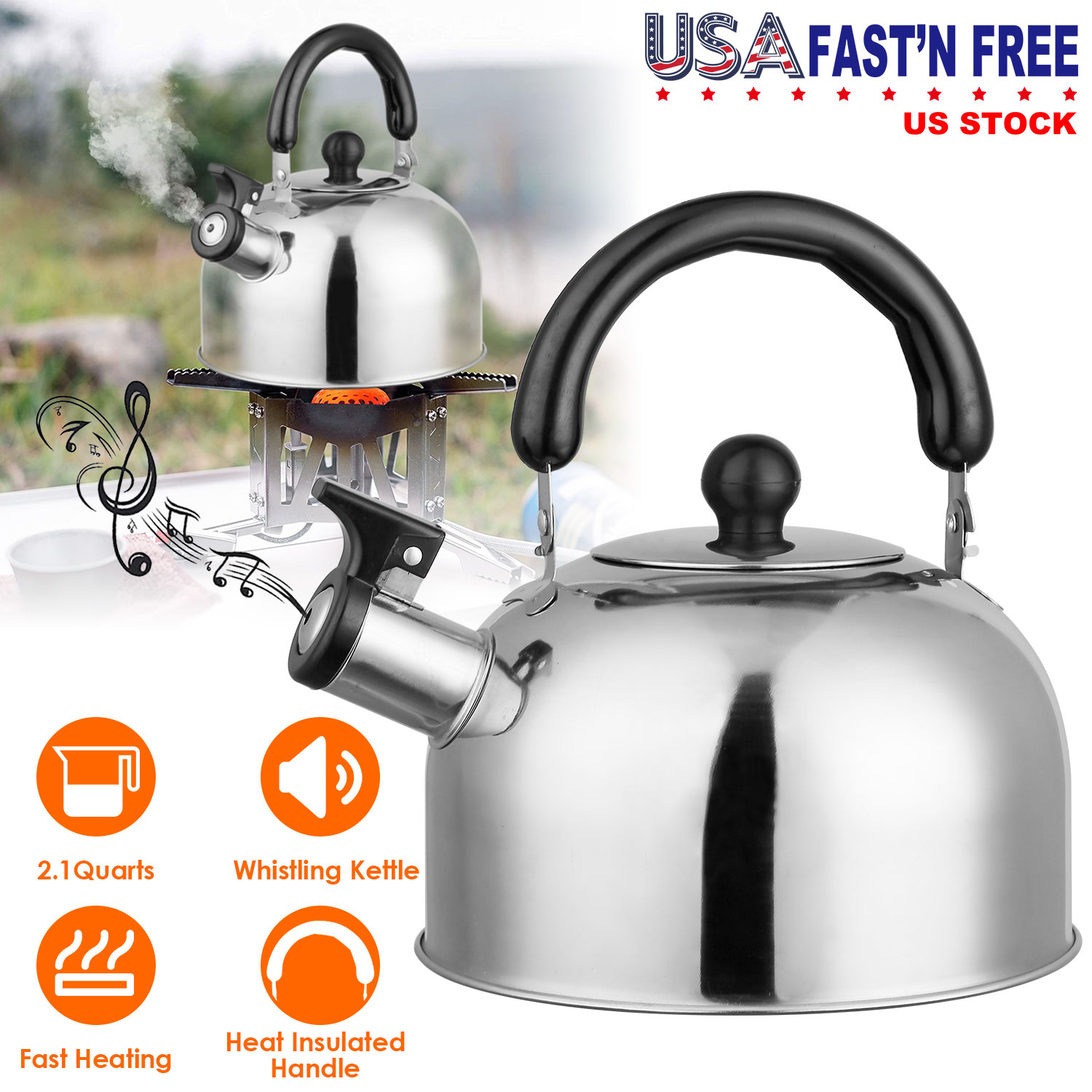 2.1Quarts Stainless Steel Whistling Tea Kettle Stovetop Induction Gas Teapot with Insulated Handle Camping Kitchen Office