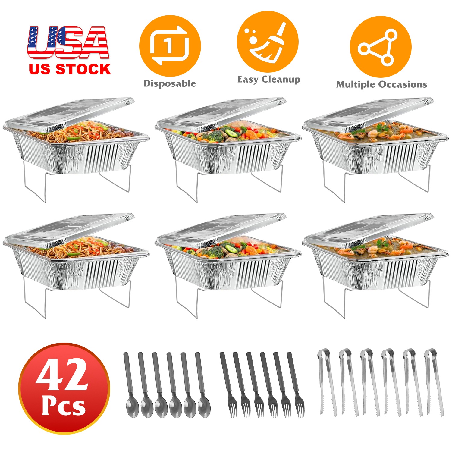 Home > 42Pcs Disposable Chafing Dish Buffet Set Chafing Servers with Covers Spoons Forks Tongs Full-Size Pans Food Warmers for Parties Events Catering Suppli