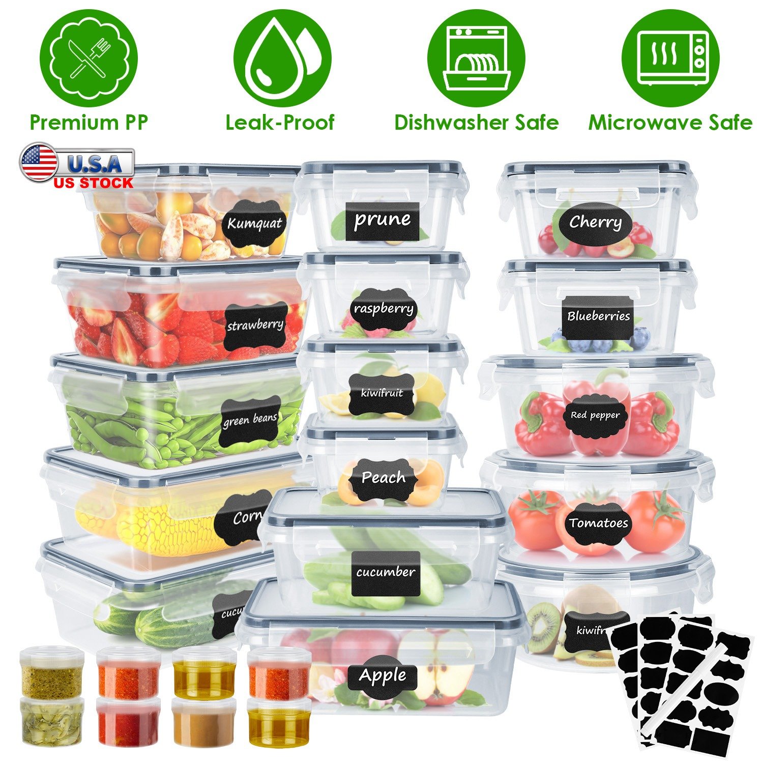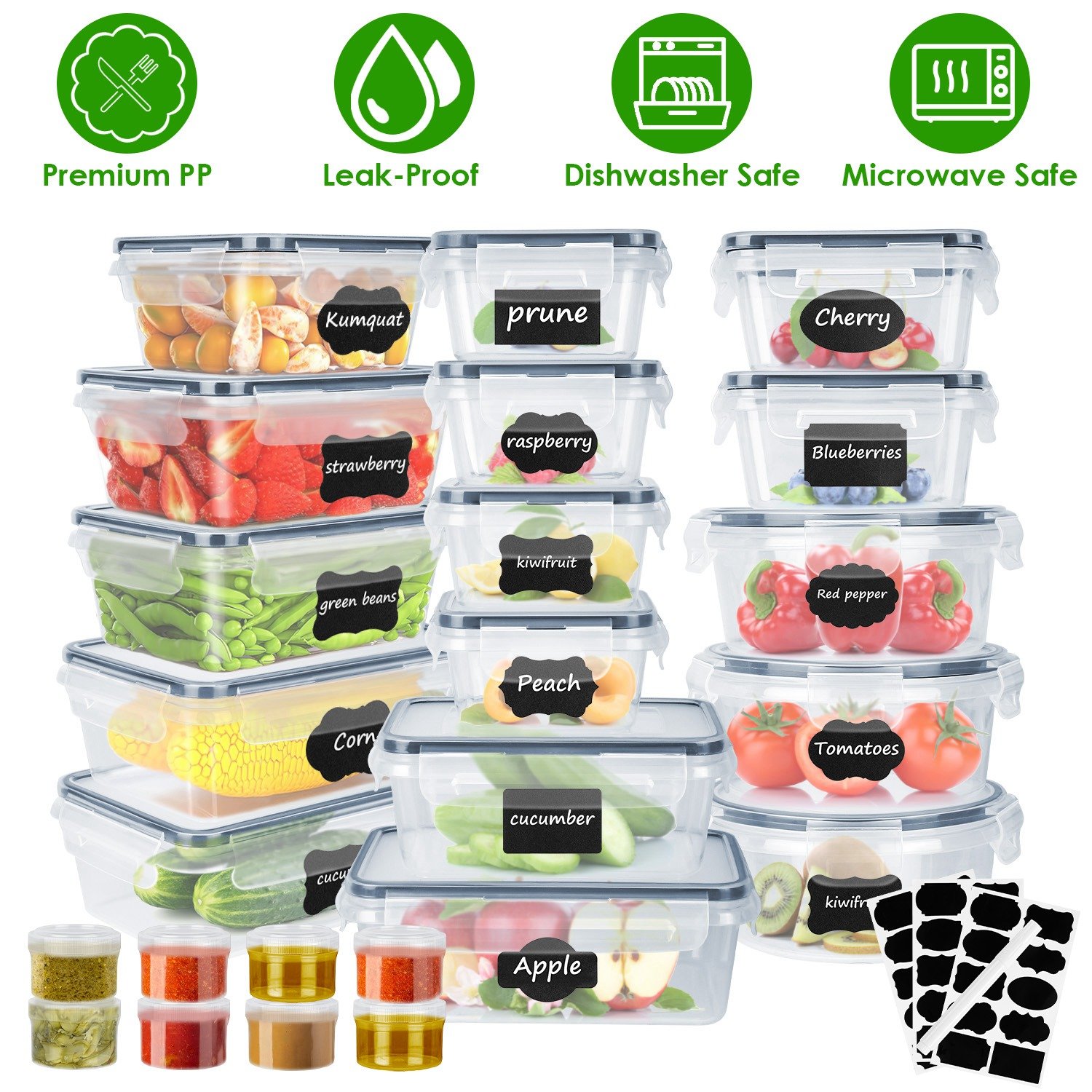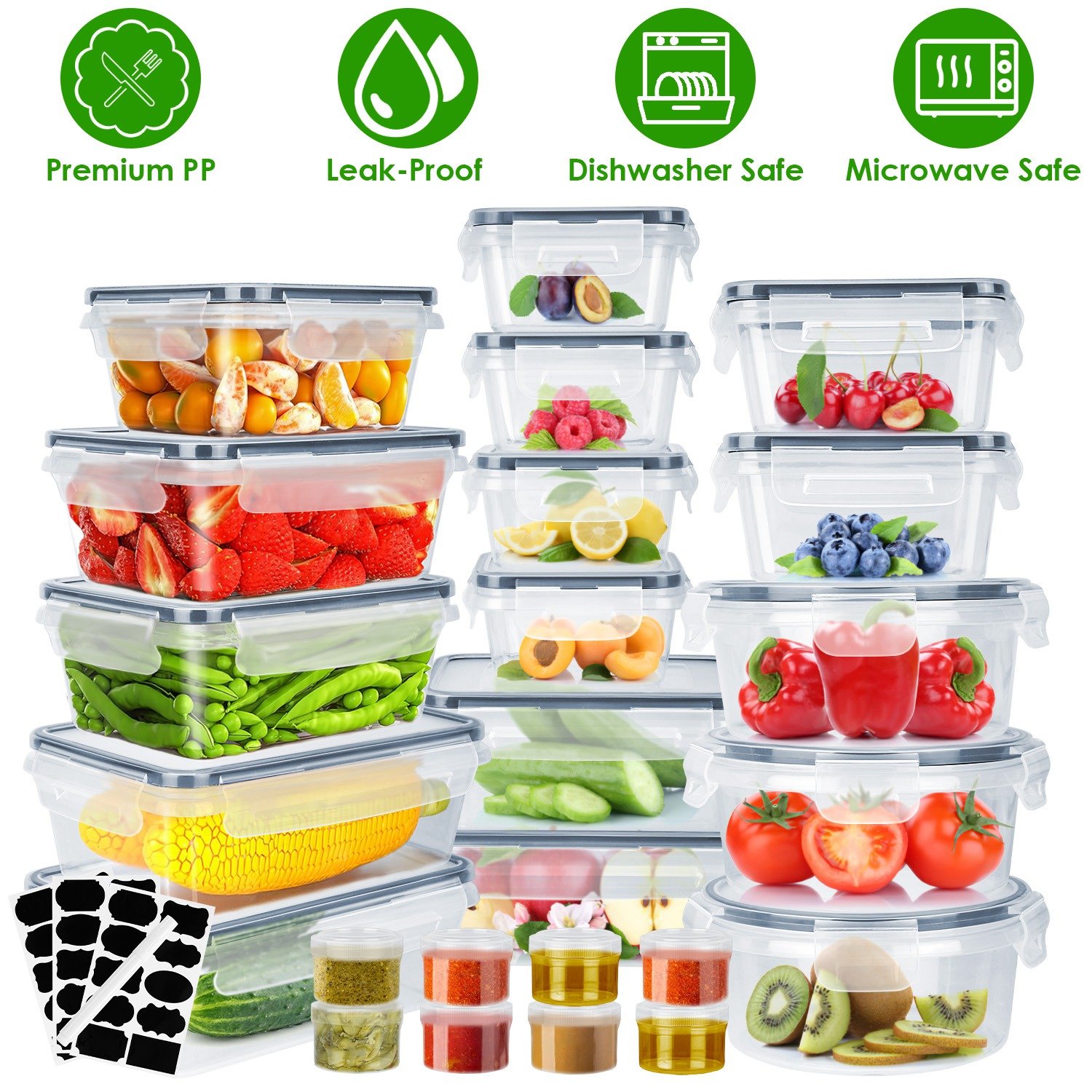 Home > 44Pieces Plastic Food Storage Containers with Lids Airtight Leak-Proof Reusable Meal Prep Containers Lunch Container With Labels Marker for Kitchen St