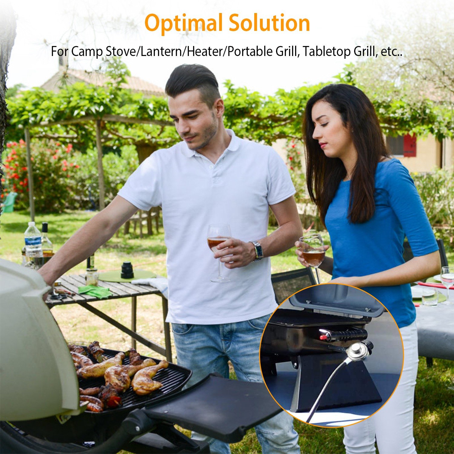 Low pressure propane regulator fits QCC1/Type1 LP gas propane tanks and 5/8-18UNF connection. Let you stop spending more money on those expensive 16.4oz /1lb little propane bottles. Passed CSA certified render you more safety. Durable brass and long-lasting hose provide a secure and sealed connection between grill and tank to ensure you safe leakage-free operation. No tools needed and great for BBQ, camping, tailgate party, heating needs or having a patio/camping outdoor cookout.