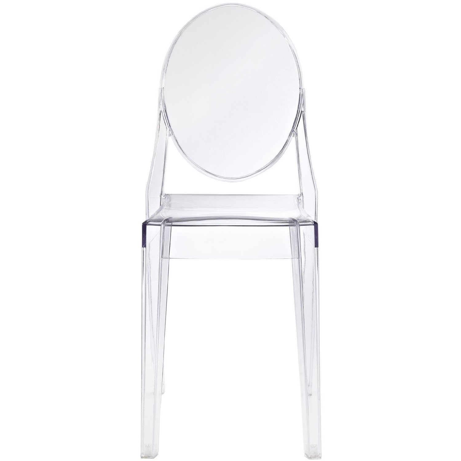 Combine artistic endeavors into a unified vision of harmony and grace with this Stackable Clear Acrylic Dining Chair for Indoor or Outdoor Use. Allow bursts of creative energy to reach every aspect of your contemporary living space as this masterpiece reinvents your surroundings. Surprisingly sturdy and durable, the Ghost Chair is appropriate for any room or outdoor setting. Pure perception awaits, as shining moments of brilliance turn visual vacuums into new realms of transcendence. This item is a high quality reproduction of the original. Overall Product Dimensions: 36"H x 15"W x 19"D Seat height: 18.5" Item Ships Small Package Carrier.