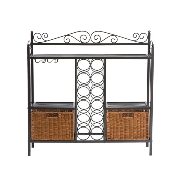Home > Kitchen Dining Baker's Rack with Wine Storage and Rattan Baskets