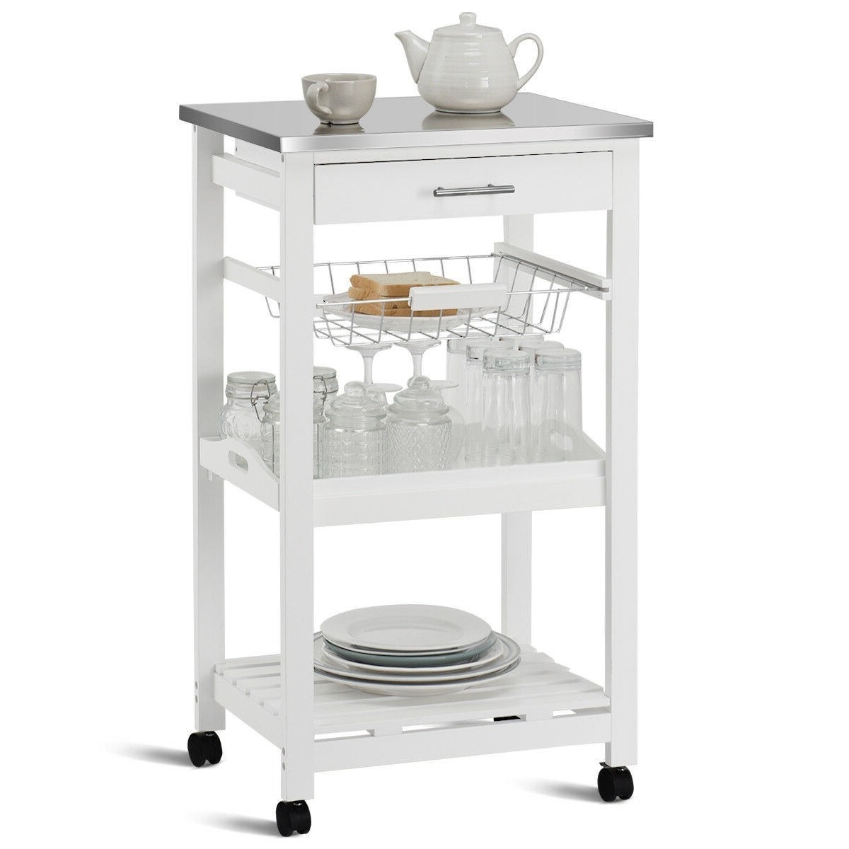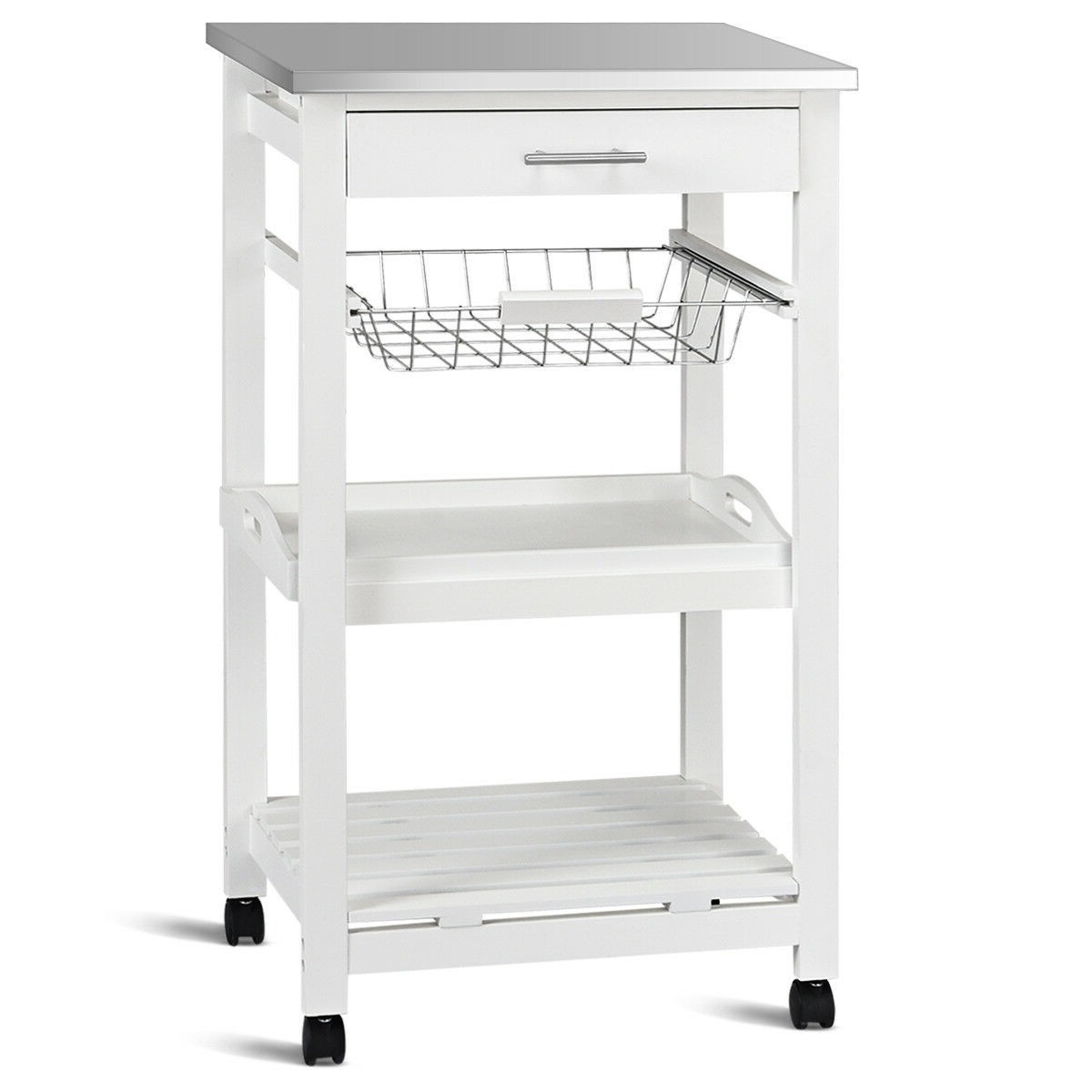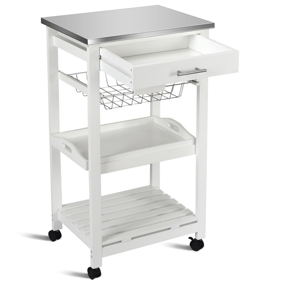 White Kitchen Cart with Storage Drawer and Stainless Steel Top White Kitchen Cart with Storage Drawer and Stainless Steel Top White Kitchen Cart with Storage Drawer and Stainless Steel Top White Kitchen Cart with Storage Drawer and Stainless Steel Top White Kitchen Cart with Storage Drawer and Stainless Steel Top